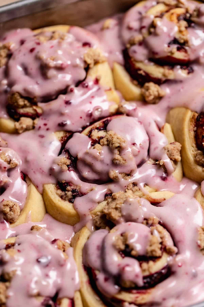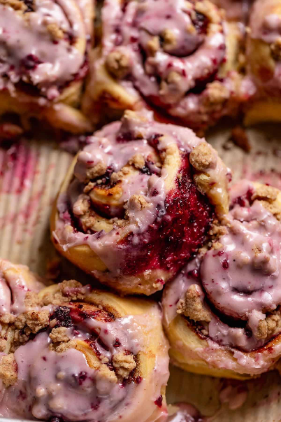Soft, buttery cinnamon roll dough meets a luscious blueberry filling that bakes into a jammy swirl of